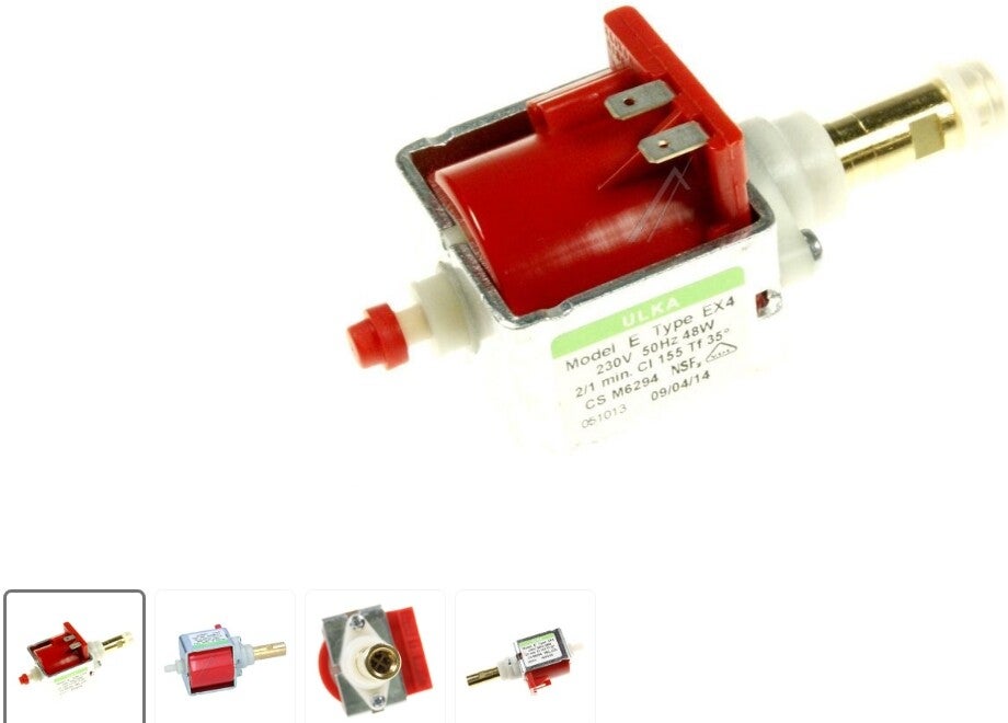 Wassereinlauf: 14 mm Wasserauslauf: 7 mm Hersteller: Ulka Leistungsaufnahme: 48 W Art Spannung: AC Spannung: 230 V Elektrische Anschlüsse: 2x 6,3mm Flachstecker