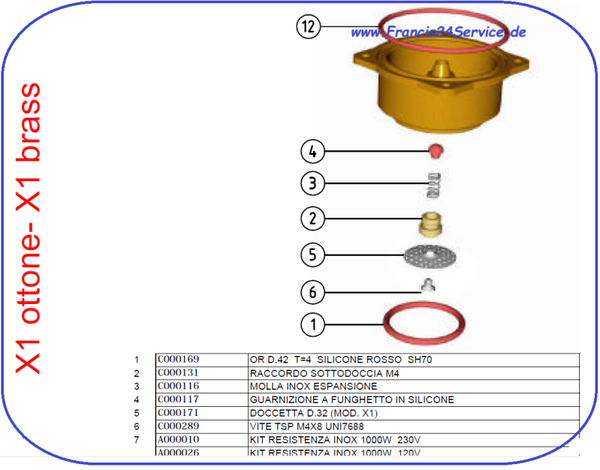 Francis Illy - C000171.51.5mm 5teilig Sieb+ Schraube VA 4x8 mm Messing Boiler