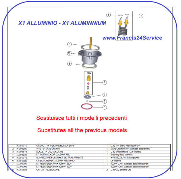 Francis ILLY X1 -C001077+C001086-OR.Dichtring 70.5.5 BOILER ALU 42.3.8