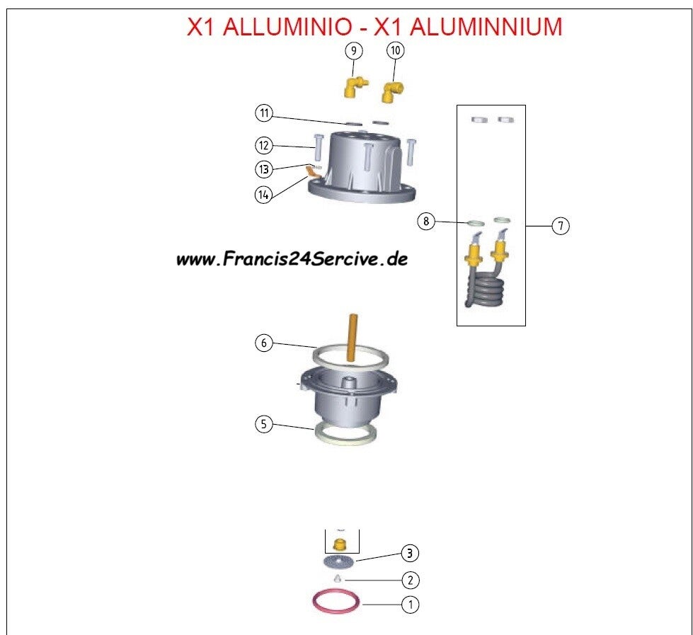 Francis illy X1 Alu Boiler-C001076ALU 42.3,5 Viton schwarz pos 01